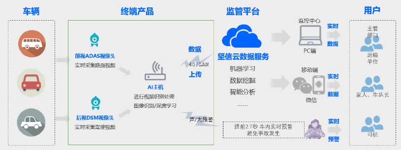 智能視頻監控報警產品,聚焦駕駛行為分析(疲勞駕駛)這一影響行車安全的關鍵因素,集主動安全監護(ADAS前向駕駛輔助及DSM駕駛員監測)、平臺 監測、家人關注、碰撞自動呼救、緊急救援為一體,最大限度保障駕駛員行車安全。